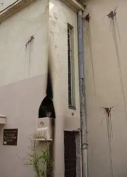 The RCC has been attacked and vandalized on several occasions. On January 22, 1992, it was raided by UNA-UNSO led by a member of Lviv Oblast Council.[1] UNA-UNSO members searched the building, partially destroyed archives and pushed people out from the building.[1] The leader of attackers declared that everything in Ukraine must now be returned to Ukrainians, so the Moskals were not allowed to reside or have property there.[1] The building was vandalized during the Papal Visit to Lviv in 2001,[8] then in 2003 (5 times),[9][10] 2004 (during the Orange revolution[11]), 2005,[12][13] 2006 [14]