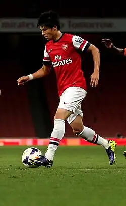 Miyachi made an early return to the Emirates from his loan move at Wigan due to injury. On 22 July 2013, Miyaichi scored his first goal for Arsenal in a friendly against Nagoya Grampus during Arsenal's pre-season Asia tour,[33] scoring a penalty-kick in the 26th minute.[34] He went on to make his UEFA Champions League debut on 28 August 2013 in a 2–0 win over Fenerbahçe.[35][36][32]