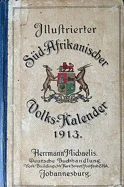 The Süd-Afrikanischer Volks-Kalender ( English: South African [German] Peoples Year Book) was a series of Almanacs published by Hermann Michaelis (born in Rendsburg, Germany 1855, died Johannesburg, South Africa 1913.[1]) between 1887 and 1913. The almanacs contain information on the German community in South Africa at the time and have been described as a rich resource for historians and genealogists.[2]