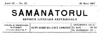 Sămănătorul or Semănătorul (pronounced [səmənəˈtorul / semənəˈtorul], Romanian for "The Sower") was a literary and political magazine published in Romania between 1901 and 1910. Founded by poets Alexandru Vlahuță and George Coșbuc, it is primarily remembered as a tribune for early 20th century traditionalism, neoromanticism and ethnic nationalism. The magazine's ideology, commonly known as Sămănătorism or Semănătorism, was articulated after 1905, when historian and literary theorist Nicolae Iorga became editor in chief. While its populism, critique of capitalism and emphasis on peasant society separated it from other conservative groups, Sămănătorul shared views with its main conservative predecessor, the Junimea society, particularly in expressing reserve toward Westernization. In parallel, its right-wing agenda made it stand in contrast to the Poporanists, a Romanian populist faction whose socialist-inspired ideology also opposed rapid urbanization, but there was a significant overlap in membership between the two groups. Sămănătorul's relationship with the dominant National Liberal Party was equally ambiguous, ranging from an alliance between Sămănătorul and National Liberal politician Spiru Haret to Iorga's explicit condemnation of 20th century Romanian liberalism.