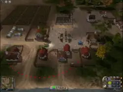 One of the special and innovative features of the game engine is the direct display of the minimal and maximal firing range of a unit by dotted lines surrounding the unit. These lines fully adhere to the terrain just above the texture layer and are displayed in red for minimal and yellow for maximal range. While obvious, this tool from the world of turn-based strategies was most likely the first implementation in real-time tactics. The feature greatly enhances the gameplay and is also a signature component of the following StormRegion's Codename: Panzers series.