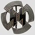 The SA Sports Badge (German: SA-Sportabzeichen) was a decoration of Nazi Germany that was issued between the years 1933 and 1945. It was a political version of the much more generic German Sports Badge, which was also issued in great numbers by the Nazis.[1] At its center was a 57mm high Roman broad sword, superimposed over a Nazi swastika encircled by a wreath of oak leaves. It was a pin-back badge, but there was a cloth version, as well.[2]
