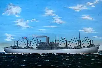 SS Sea Marlin was a C3-S-A2 cargo ship operated for the War Shipping Administration (WSA) by Grace Lines during World War II.[2] WSA allocated Sea Marlin to United States Army requirements.[3] Sea Marlin was crewed by United States Merchant Marines, with a contingent of the US Naval Armed Guards for the guns and had a complement of the US Army Transportation Corps (Water Division) aboard for troop administration.[4]