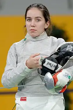 Sabina Mikina (Azerbaijani: Səbinə Mikina; born 24 October 1987 in Baku) is an Azerbaijani sabre fencer.[1][2] Mikina represented Azerbaijan at the 2012 Summer Olympics in London, where she competed in the women's individual sabre event. She defeated Hungarian-born German fencer Alexandra Bujdoso in the first preliminary round, before losing her next match to Ukraine's Olga Kharlan, with a final score of 10–15.[3]