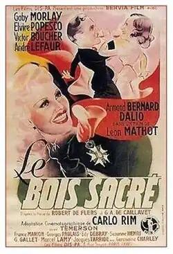 Sacred Woods (French: Le bois sacré) is a 1939 French comedy film directed by Léon Mathot and starring Elvire Popesco, Gaby Morlay and Victor Boucher.[1] It was based on a play by Robert de Flers and Gaston Arman de Caillavet which had previously been made into a 1915 Italian film by Carmine Gallone. The film's sets were designed by the art director Robert Gys.