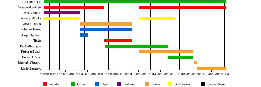 In 1998, musician Luciano Rojas left the band La Ley and met Rodrigo Aboitiz, another former member of the band in Mexico City with the intention of creating a new musical project. Both musicians returned to Santiago, Chile where they joined with Iván Delgado other musician who was part of the band La Ley in its beginnings, perform a casting to hire a female singer to form a new band, the selected is the singer Denisse Malebrán, who had studies of singing, and formed Part of the emerging bands Turbomente and Polaroid.[2]