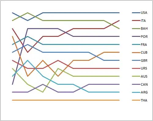Graph showing the daily standings in the Star during the 1956 Summer Olympics