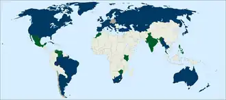 Green: Country participated for the first time