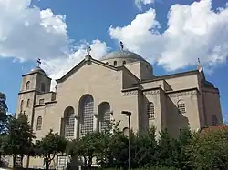The congregation met in temporary quarters for several years, prior to the construction of its own church near 8th and L Streets NW which was dedicated in 1924. This site is currently occupied by the Walter E. Washington Convention Center. Construction on the current edifice at 2815 36th Street NW, near Massachusetts Avenue and a short distance from the Washington National Cathedral, began in 1951. The congregation began worshipping there in 1955 shortly after major construction was completed. Although the building has been in use for over fifty years, the interior decoration is incomplete. Work began on the interior in 1965 and continues to the present. The cathedral was Consecrated in May 2015 by Archbishop Demetrios of America.[1]
