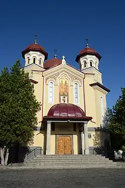 The church is built along a road linking elements of the Sculptural Ensemble of Constantin Brâncuși, and is integrated with these works. It was built on the site of an earlier church from 1777. Erected between 1927 and 1938, it was dedicated at the same time as the sculptures, on November 7, 1937. Local painter Iosif Keber executed the neo-Byzantine frescoes, while Ion Antonescu, Anghel Păunescu and Julius Doppelreiter were the architects.[1] The building is considered a historic monument by Romania's Culture Ministry.[2]
