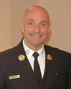 Cassano held every rank in the department during his career (beginning as a firefighter in 1969), including promotions to Lieutenant in August 1977, Captain in April 1984, Battalion Chief in August 1987, Deputy Chief in June 1993, Deputy Assistant Chief in November 1999, and Assistant Chief in April 2001.[5] He was also instrumental in rebuilding the department after 343 firefighters died as a result of the September 11 attacks, after which he was named Chief of Operations and served at this post,[5][3][16] succeeding Daniel A. Nigro until 2006.[17] He was appointed Chief of Department, the highest uniformed position in the department, succeeding Peter E. Hayden in 2006,[17] and his appointment as Fire Commissioner was announced by New York City Mayor Michael Bloomberg on December 21, 2009. In 2011, in recognition of his service to the city of New York, he received the Ellis Island Medal of Honor. He was retained by new Mayor Bill De Blasio on what he emphasized was on an interim basis.[18]