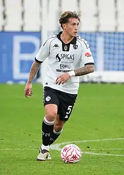 Salvatore Esposito wearing the Spezia jersey.