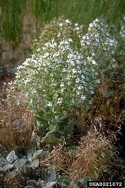 Salvia aethiopis is a species of perennial plant known by the common names Mediterranean sage or African sage. It is best known as a noxious weed, particularly in the western United States. It is native to Eurasia and was probably introduced to North America as a contaminant of alfalfa seed. It is a weed of rangelands and pastures. It is unpalatable to livestock, it disrupts native floral communities, and it becomes a physical nuisance due to the similarity of the persistent dried stems to tumbleweed. The weevil Phrydiuchus tau is used as an agent of biological pest control on this plant.