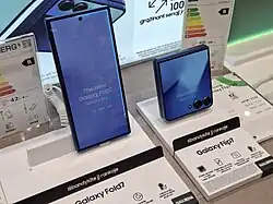 ![]() A Samsung Galaxy Z Fold 7 (left) and Samsung Galaxy Z Flip 7 (right), both folded | |