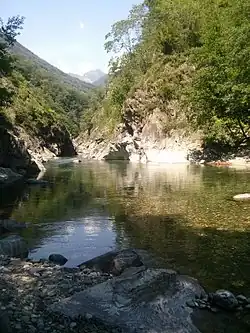 The San Bernardino passes through the communes of San Bernardino Verbano (which takes its name from the river), Cossogno and finally Verbania, where it separates the population centres of Pallanza and Intra and falls into Lake Maggiore.