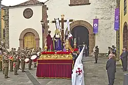 Holy Week in the city of San Cristóbal de La Laguna is the largest of the Canary Islands.[15] Holy Week has steps of great historical and artistic value, such as the aforementioned Cristo de La Laguna, accompanied by their guilds, some of them centuries old and which adopted the use of the hood in the nineteenth century, ride on the wheeled carts streets of the city.