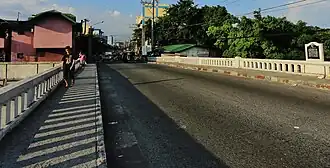 The San Juan River Bridge (Filipino: Tulay ng Ilog San Juan), also known as Pinaglabanan Bridge, San Juan del Monte Bridge, San Juan Bridge and the Old Santa Mesa Bridge, is a bridge that connects San Juan and Manila, spanning the San Juan River. The 46.85-meter (153.7 ft) bridge connects the N. Domingo Street in San Juan and Old Santa Mesa Street in Manila. The location of the bridge served as a battlefield during the 1896 Philippine Revolution against the Spaniards and the 1899 Philippine–American War.