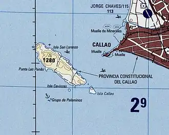 San Lorenzo Island is the largest island of Peru. The island is in the Pacific Ocean near the port of Callao and measures 16.5 square kilometres (6.4 sq mi).[1]