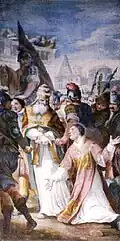 Albrici fresco depicting St Lawrence with Pope Sixtus II.