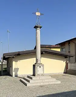 In 1748 the curate Pietro Plantanida exchanged the clergy house and the adjoining lands with Count Caroelli for a farmhouse in the centre of village.[37][45] However, despite having a large courtyard and the advantage of being constantly sunny (it faced south), the distance from the church and the age of the building made it objectively uncomfortable.[37] After a century the building became uninhabitable, forcing the curate Giovanni De Paoli to abandon it and ask for hospitality first in the palace of Count Caroelli then to the priest/lawyer Antonio Pagella.[37]