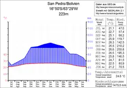 2. ^ "Base de datos Sistema Meteorológico–SISMET" (in Spanish). Servicio Nacional de Meteorología e Hidrología de Bolivia. Archived from the original on 7 June 2018. Retrieved 15 June 2024.