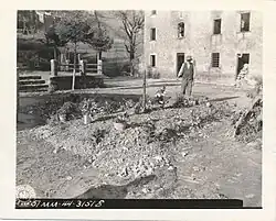 After other people were killed through the village, their corpses were set on fire (at the church, the soldiers used its pews for a bonfire to dispose of the bodies). The livestock were also exterminated and the whole village was burned down. All this took three hours. The SS men then sat down outside the burning Sant'Anna and ate lunch.[10]