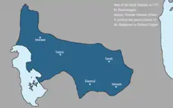 The Khanate was founded by Ali Khan, the leader of the Kurdish Shaqaqi tribe, after 1747.[1] In 1750, Ali Khan was defeated by Azad Khan Afghan and forced to submit. In the spring of 1762, Karim Khan Zand invaded Azerbaijan to force Fath-Ali Khan Afshar and his Urmia Khanate to submit. Ali Khan Shaqaqi submitted and supplied the Zand army. Karim Khan would capture Tabriz and capture Urmia on February 20, 1763 after a seven month siege. Under Ali Khan's rule, the khanate had an alliance with the neighboring Ardabil Khanate and the Karabakh Khanate.[6]