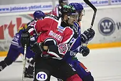 Ässät player Patrik Forsbacka, a player known for fighting and physical play,[24][25] in a matchup between Ässät and Lukko.