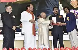 Vegesna (right) receiving award from President Pranab Mukherjee (middle) at the 64th National Film Awards, 2017