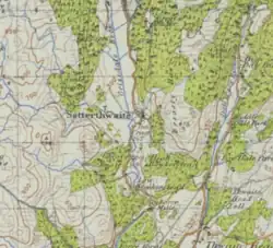 Satterthwaite is a small village (and civil parish) with around 50 dwellings situated in Grizedale, a valley in the Lake District, England, about four miles south of Hawkshead. It has a church, All Saints', and a Parish Room. The civil parish of Satterthwaite has its own community website. In the 2001 census the parish had a population of 257,[2] decreasing at the 2011 census to 215.[1] The population peaked in 1881 at 450 and has since gradually declined to the current day. In the 10 years to 1891 the population fell to 410 falling further to 325 in 1931. The population decline is probably due to rural urban migration.[3]