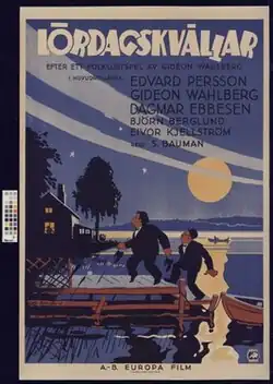 Saturday Nights or Saturday Evenings (Swedish: Lördagskvällar) is a 1933 Swedish comedy film directed by Schamyl Bauman and starring Edvard Persson, Dagmar Ebbesen and Eivor Kjellström.[1] It was made at the Sundbyberg Studios of Europa Film in Stockholm. Location shooting took place around Värmdö. The film's sets were designed by the art director Bibi Lindström.