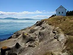 East Point Day Use Area, with a museum inside the old Fog Alarm Building,[11] an Environment Canada monitoring station, and sandstone shoreline.