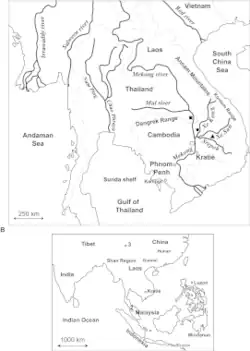 Schistosoma mekongi is found in the Lower Mekong river basin region, from Khong Island in Laos to Kratié Province, Cambodia.[1] Schistosomiasis mekongi has also been found in the province of Champasack in the southern regions of Laos, and has also been found in eastern Thailand. In fact, S. mekongi has shown that it has the smallest distribution of any schistosome species. Transmission of Schistosoma mekongi occurs in the low water season in this geographical area. Approximately 140,000 people are at risk for S. mekongi infection. This is quite a small number, but infection and re-infection sustain the disease in these populations. These affect children the most because of their high level of water contact. Reservoir hosts also play a big role in keeping the disease around, although the number of reservoir hosts for the Mekong species is less than that of other species. With the use of stool examinations, only about 1500 people are shown to be infected, but it is projected that more than 10 times this number is more accurate.[3] In 1989, a universal mass treatment with praziquantel of the people of Khong Island was performed. In 1995, a similar treatment was performed in Cambodia. In some areas, this treatment was highly effective, eliminating S. mekongi. In other regions, particularly Khong Island, there was little effect.[2]