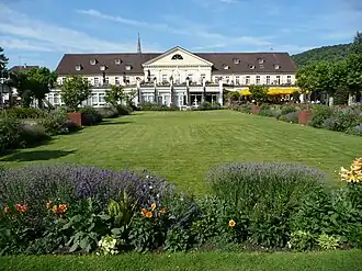 Schloss Dürkheim (English: Dürkheim palace) is a former Baroque-style palace in Bad Dürkheim, a spa town in Rhineland-Palatinate, Germany. It was the seat of the Counts and later Princes of Leiningen. Except for a few remnants, it has disappeared; today, the Kurhaus and the Kurpark-Hotel stand in its place.