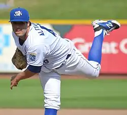 In 2015 he pitched in 35 games for the Naturals and 11 for the Omaha Storm Chasers of the Pacific Coast League. He finished 2–4 with a 4.52 ERA in 672⁄3 innings.[11] He pitched for the Gigantes del Cibao of the Dominican Winter League after the season and then returned to Omaha for 2015, where he was 2–3 with a 2.56 ERA in 631⁄3 innings over 41 games.[11] The Royals selected him as their Triple-A Pitcher of the Year.[13]