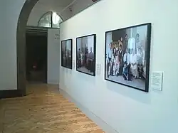 A standing display of photography on immigration at the Scottish National Portrait Gallery