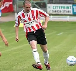 Sean Hargan (born 1974) is a former professional footballer known for his long association with Derry City. A key member of the Derry City's 1996-97 league-winning side,[1] Hargan played a pivotal role in the club's success over the years. His commitment and leadership on the pitch earned him a testimonial year in 2005, recognising his outstanding service to the club. Hargan had a brief spell at Crusaders before retiring at the end of the 2009 season.