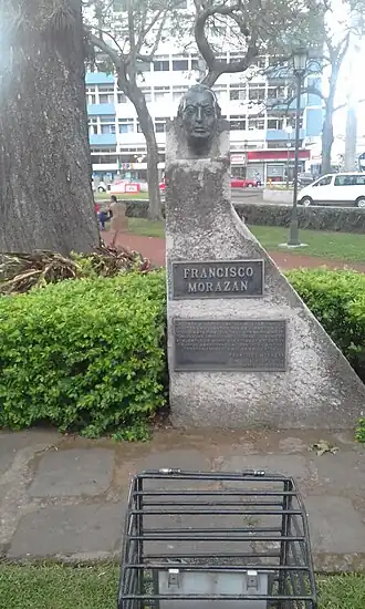 ![]() Bust of Morazán where he was executed putting an end on the Second Central American Civil War | |||||||||