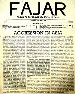 - ^ "Students' trial set for Aug. 10, 11: Varsity publication seditious 'as a whole' – Crown", The Straits Times, p. 7, 2 July 1954; "Sedition charges specified by Crown: The 8 varsity students get the details", The Straits Times, p. 5, 3 July 1954; "Q.C. says: Tremendous victory for freedom of speech", The Straits Times, p. 1, 26 August 1954; "A charge of sedition [editorial]", The Straits Times, p. 6, 26 August 1954; "Eight university students freed: No sedition, the judge rules", The Straits Times, p. 7, 26 August 1954. See also Poh Soo Kai; Tan Jing Quee; Koh Kay Yew, eds. (2010), The Fajar Generation: The University Socialist Club and the Politics of Postwar Malaya and Singapore, Petaling Jaya, Selangor, Malaysia: Strategic Information and Research Development Centre, ISBN 978-983378287-1.