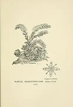 3. ^ a b "2. Sedum nevii A. Gray, Mem. Amer. Acad. Arts, n. s. 6: 373. 1858". Flora of North America. Missouri Botanical Garden & Harvard University Herbaria. 2024. Retrieved 24 May 2024.