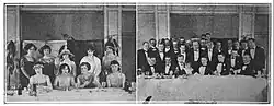 Independent Screen Artists' Guild inaugural dinner, December 15, 1921, Ambassador Hotel: In the right-hand photo, Keaton is front row, second from the left, Chaplin is center front; to the left of Keaton is Col. W. N. Selig; the boy left of Chaplin is Jackie Coogan (Exhibitors Trade Review)
