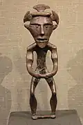 The bronzes found were technologically advanced for the time, including lost wax casting, and showed high degree of artist input in their design.[10] Horses were the most common shapes for the hilts of blades.[2] Weapons such as spearheads with hooks, single-bladed knives and socketed axes with geometric designs traveled west and east from Xinjiang.[11]