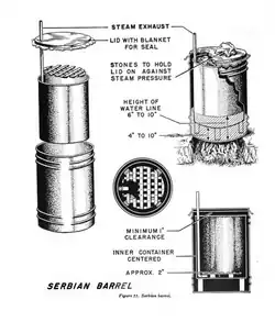 A Serbian barrel is a sterilization device used for sterilizing clothes. It consists of a wooden or metal barrel or other container which is then heated to disinfect items hung inside it by moist heat sterilization.[1][2]