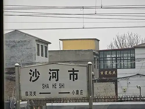 Shaheshi railway station (Chinese: 沙河市站, literally "Shahe City railway station") is a station on Beijing–Guangzhou railway in Shahe, Xingtai, Hebei.