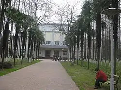 In 1865, Qing dynasty official Ding Richang established the Longmen Academy.[4] The school changed names and moved campus several times, but its current site was converted by the Empire of Japan during the Second World War into the Lunghua Civilian Assembly Center, an internment camp for American and European citizens. James Graham Ballard was interned in the camp as an adolescent. His experiences there inspired the book (and subsequent film) Empire of the Sun. The school was restored after the war,[5] and it was renamed to Shanghai High School in 1950.[6]