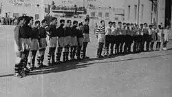 Sharikat Naft Al-Basra and Al-Minaa players before the start of their match at Thanawiyat Al-Basra Stadium in 1952