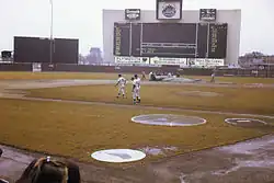 After salvaging operations concluded, demolition of the ballpark began on October 14, 2008. On October 18, the scoreboard in right field was demolished, with the bleachers, batter's eye and bullpens shortly thereafter.[23]