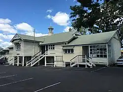 Sherwood, like many riverside suburbs in Brisbane, was significantly affected by the flood of 1893. The school grounds, along with surrounding residences in low-lying areas, were inundated. Despite the floods and the economic depression of the 1890s, enrolments rose through the turn of the century and the school committee advocated the urgent need to extend the school building.[37] Tenders were sought in late 1899, and in 1900 the 1887 Ferguson-designed school building was extended at cost of £182.[38][39] An image of the extended building around that time shows it had a roof fleche.[40][1]