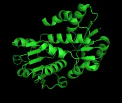 - ^ a b c Ye S, Von Delft F, Brooun A, Knuth MW, Swanson RV, McRee DE (July 2003). "The crystal structure of shikimate dehydrogenase (AroE) reveals a unique NADPH binding mode". J. Bacteriol. 185 (14): 4144–51. doi:10.1128/JB.185.14.4144-4151.2003. PMC 164887. PMID 12837789.