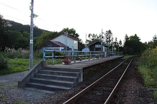 Shinmei Station was served by the non-electrified section of the Esashi Line between Kikonai and Esashi.